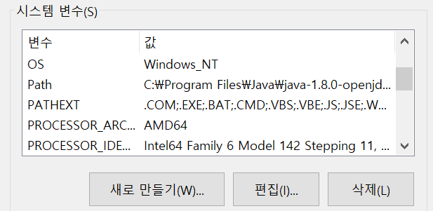 환경 변수 눌러서 시스템 변수에서 Path를 누르고 편집을 눌러줍니다.