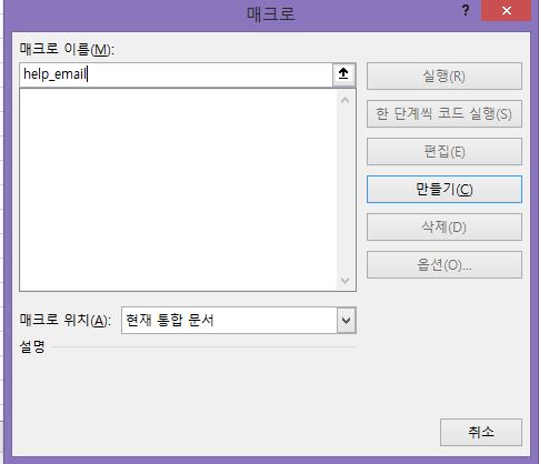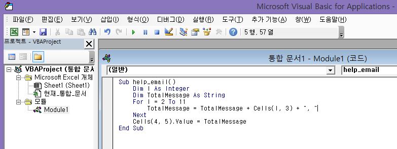 저도 엑셀 VBA는 처음이라 서툴지엑셀 셀 내용 합치기만 일하다가 다른 일 있으면 또 적어보겠습니다.