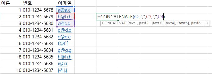 저는 2행부터 11행까지 이메일을 가져올 거라 2 To 11을 적어줬습니다.
