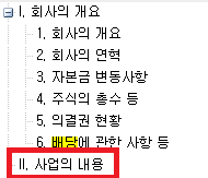 보고서 왼쪽에 보면 사업의 내용이 있습니다.